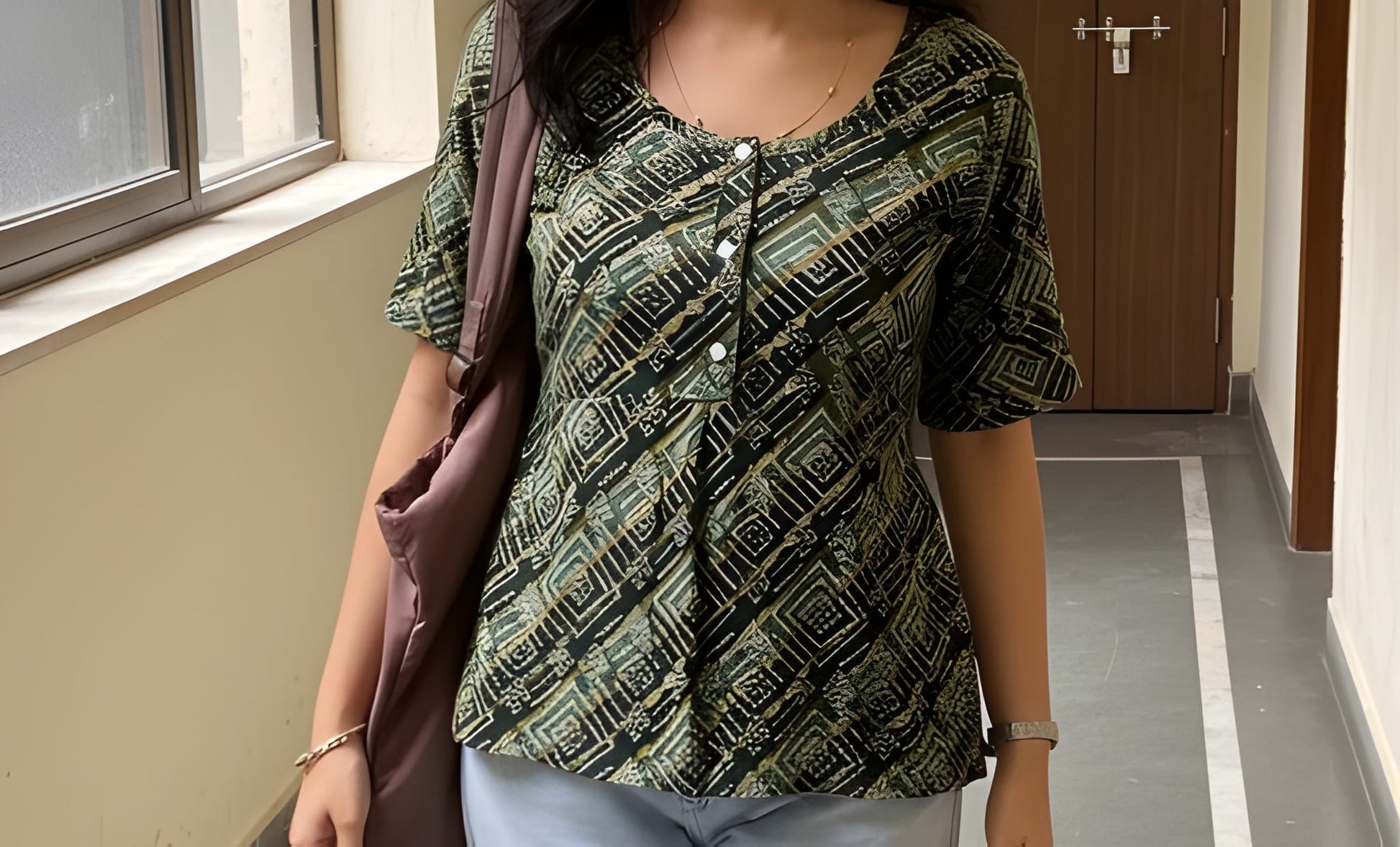 Discover the perfect blend of style and ease. This Abstract Geo Tunic Top features a striking, angular geometric print in shades of black, olive, and cream. The scoop neck with a partial button placket adds detail, and the soft gathers below the bust create a comfortable, relaxed fit that’s universally flattering. Made from a lightweight, breathable fabric, it’s ideal for all-day wear.