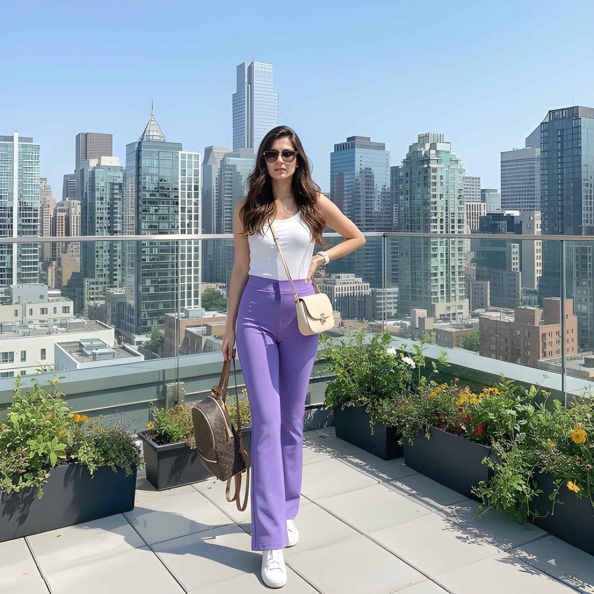 Bring some joyful color into your wardrobe with our Lavender Dream Trousers. These pants are cut to perfection with a sleek, high-waisted fit that beautifully elongates your silhouette, ending in a modern, subtle flare or straight-leg hem.