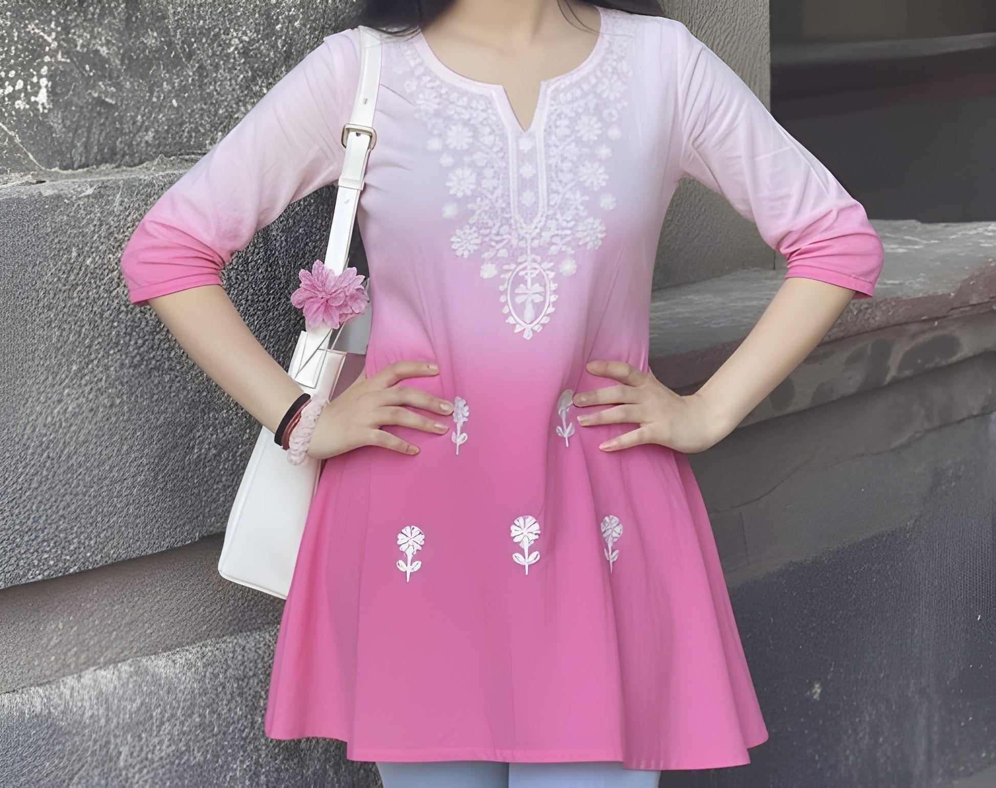 The 'Sunset Pink' Ombre Embroidered Tunic Short Kurti
